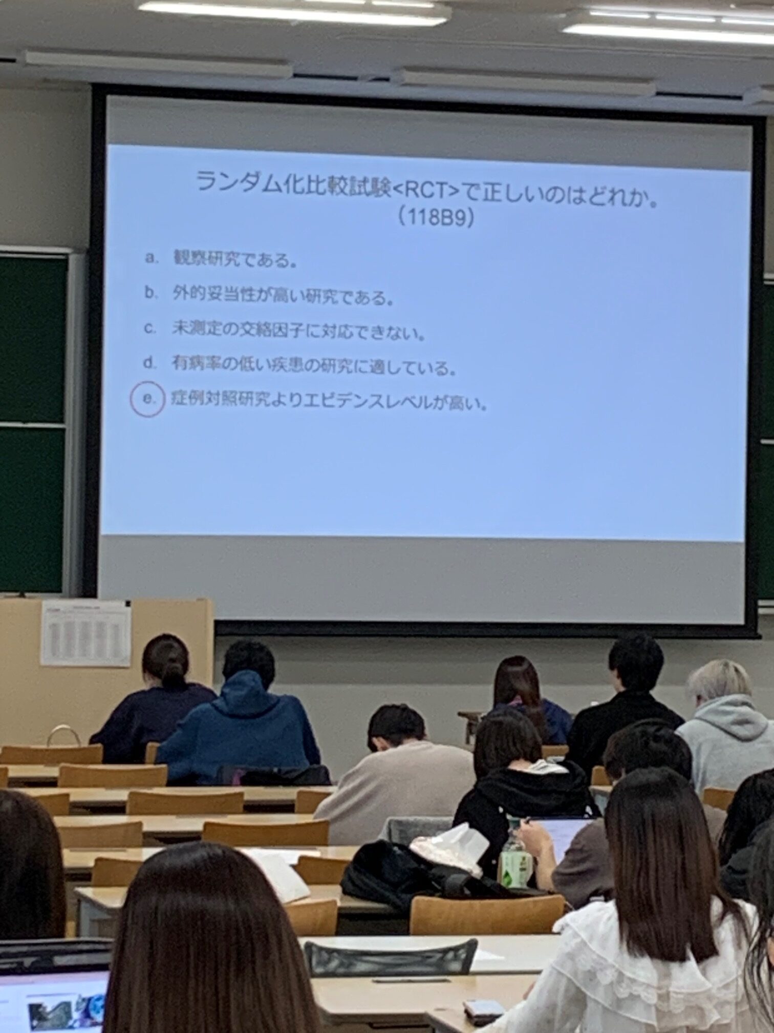 2026.04.23 医学部3年の公衆衛生学講座(介入研究)の講義を受講しました この時期、歯科衛生士学校で衛生統計の講義を担当しているため、確認も兼ねて学生に混じって参加してきました。女子学生の割合が非常に多いことにも気づきました。